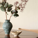 The narrow opening makes it ideal for sculptural branches or a restrained floral arrangement, while the glaze allows it to stand confidently on its own.