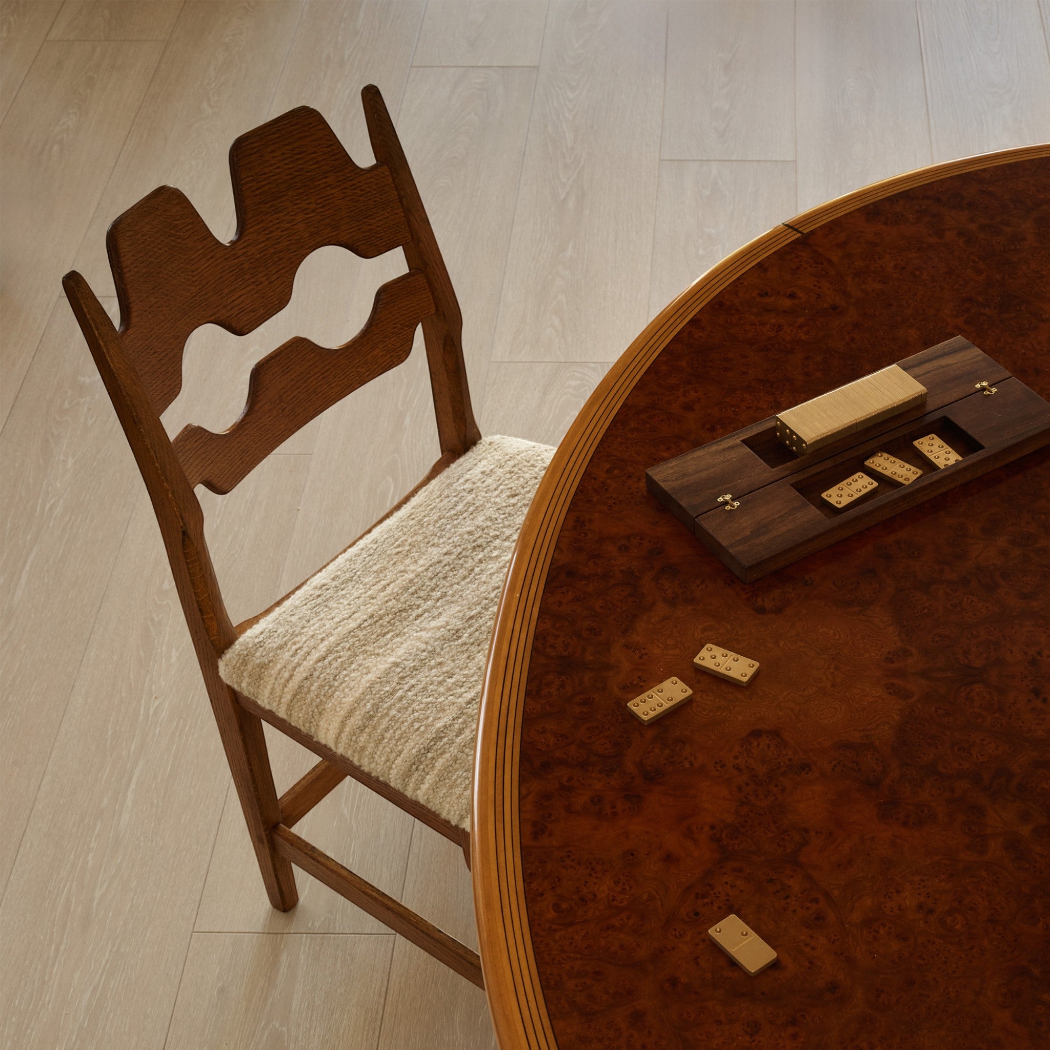 Recently reupholstered in premium fabric, they offer modern comfort while maintaining their original charm. These reupholstered Danish dining chairs are ideal for adding character and elegance to contemporary interiors.