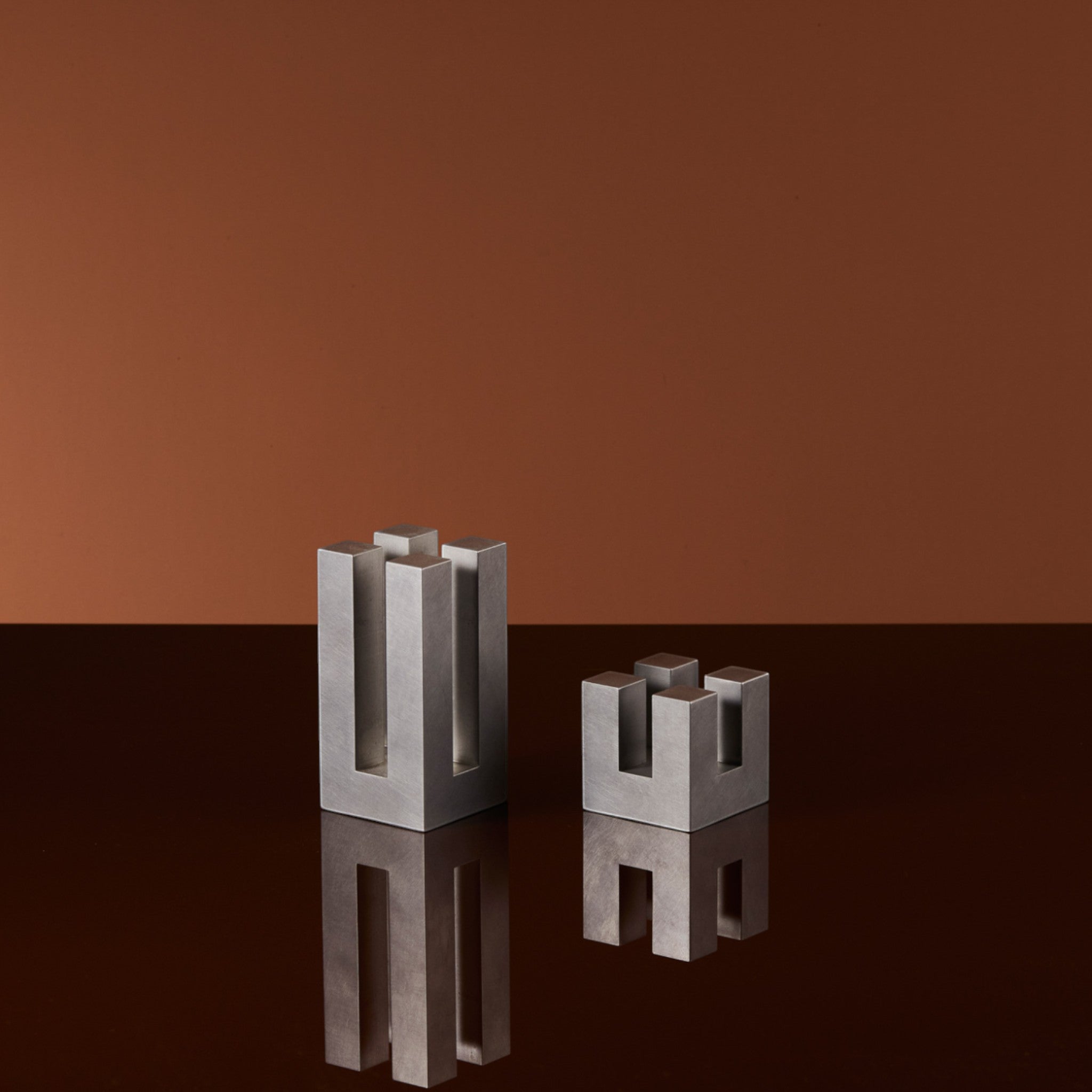 Ashley Corbett-Smith's Small Aluminium Candle Block is based on one of the earliest architectural principles, a dais and four vertical columns. As a form, it is as simple and elegant as possible.