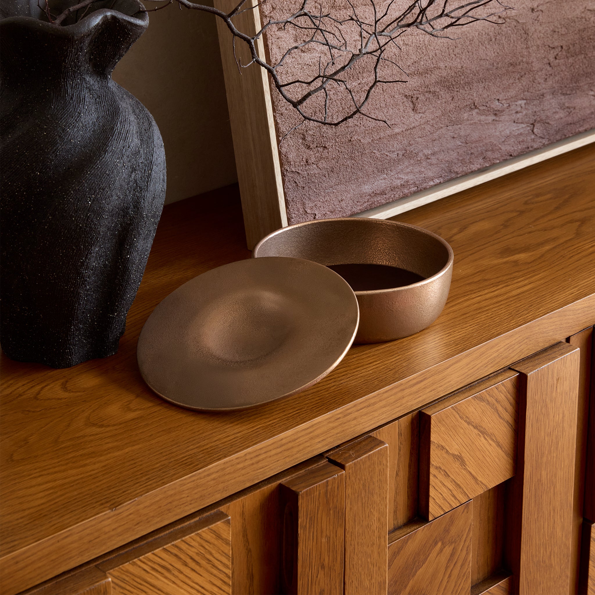 Based on a classical Pyxis, this bronze object box has a depression in the lid derived from depictions of Einstein's theory of gravitational waves.