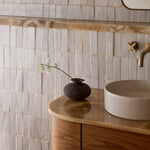 Crafted from dark stoneware clay in rich, earthy brown tones, the Volca piece by Tasmanian ceramicist Kate Bowman is a sculptural ceramic object with a beautifully tactile presence. Its unglazed finish and organic silhouette highlight the raw texture and natural variation that make each piece unique.