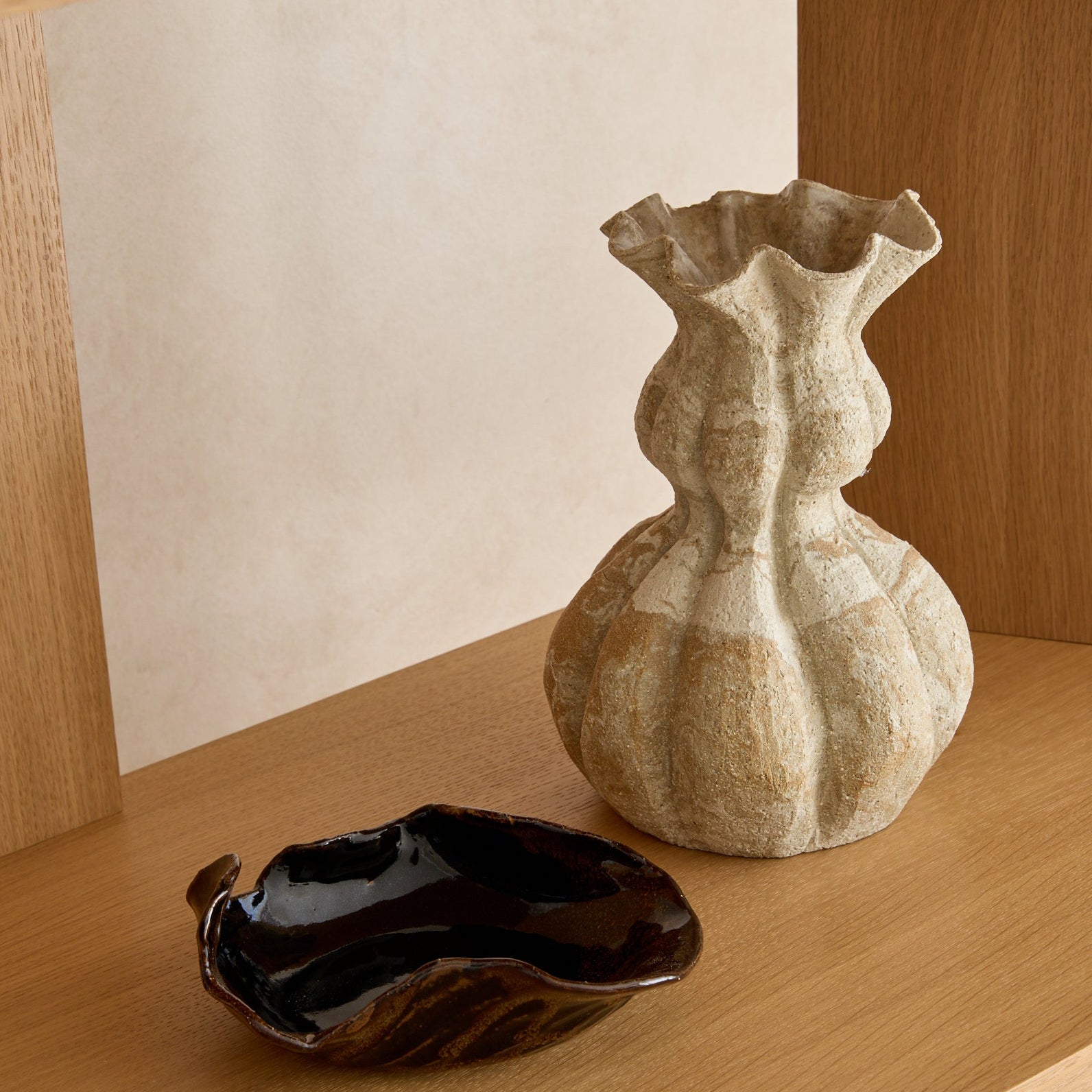 Sculptural and organic, the Layers Vase #2 by Australian artist Elena Morgan Strohfeld is a piece of art in itself. Handcrafted with a textured, natural finish, its distinctive silhouette is defined by soft curves and rippling folds that echo the movement of fabric. Each vase features unique tonal layers, created through a careful hand-applied process that highlights the raw beauty of its material.