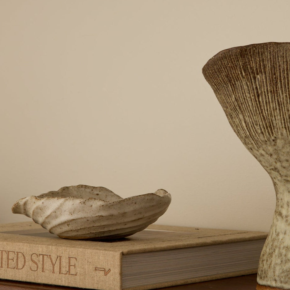 Sold | Fluted Ceramic Beige Dish by Tee McManus