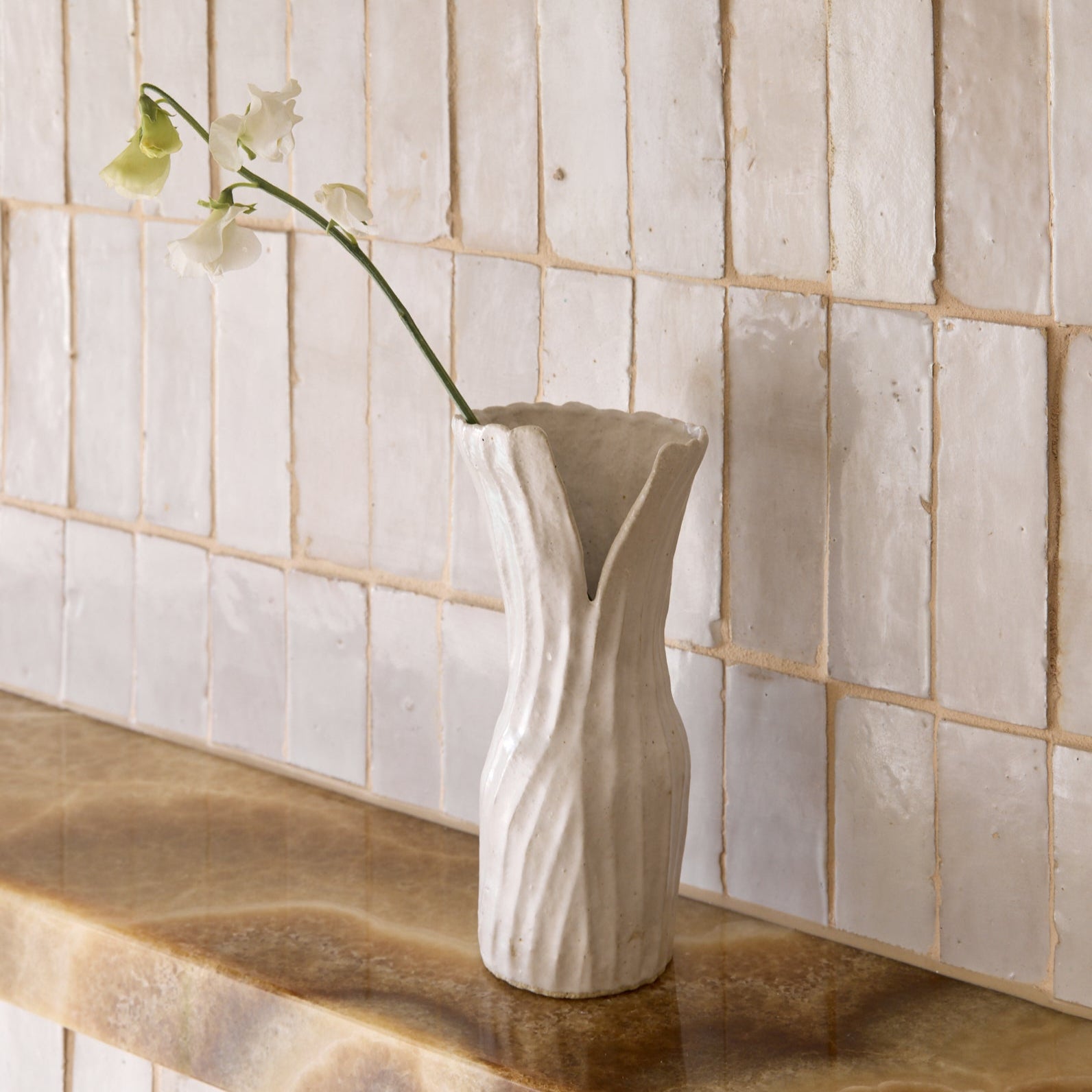 White Fluted Ceramic Bowl Vase by Tee McManus
