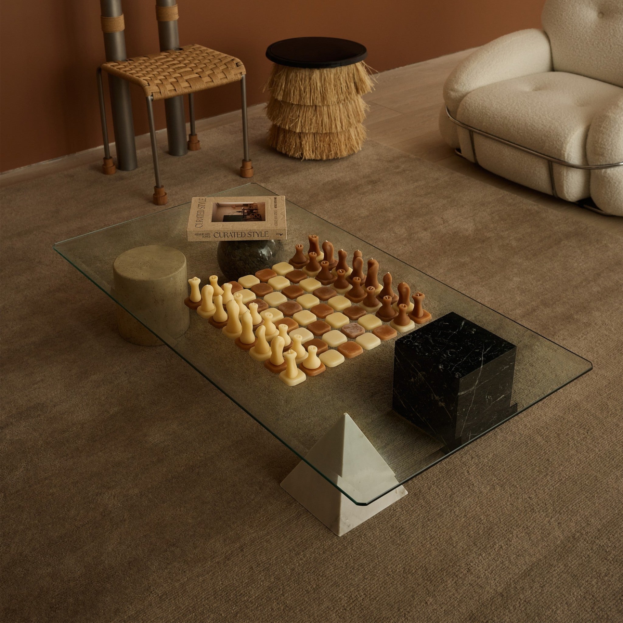 This unique beeswax chess set, hand-crafted by artist Tatsiana Shevarenkova, transforms a classic game into a sculptural art object. Each piece is meticulously crafted, offering both functionality and aesthetic appeal for collectors and design enthusiasts.
