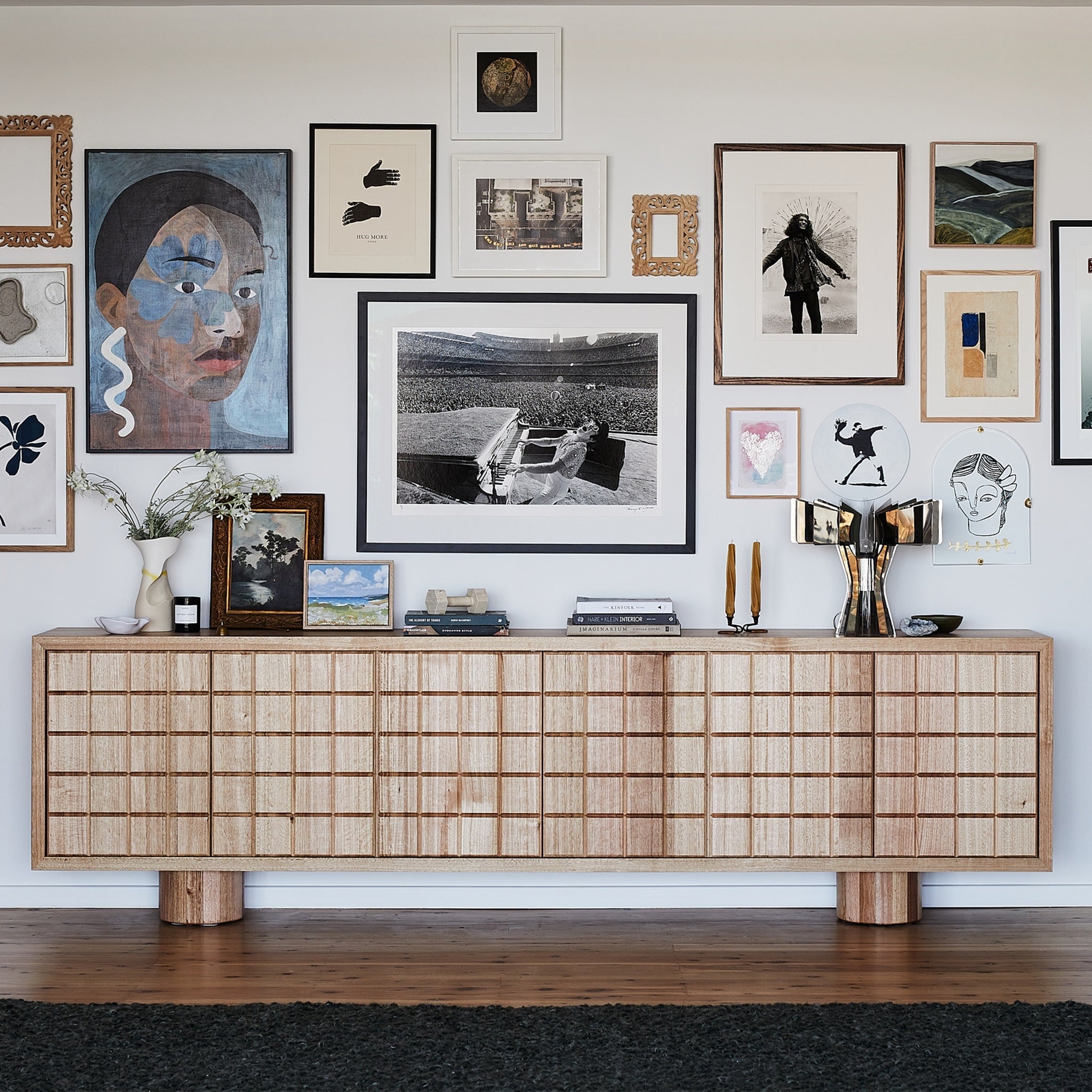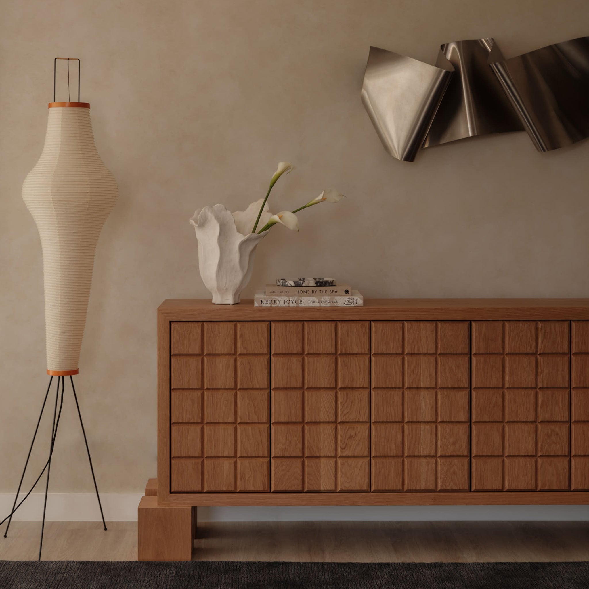Designed by Kerrie-Ann Jones, the Dolores sideboard features a geometric, grid-like facade, with subtle recessed details creating texture and visual interest.