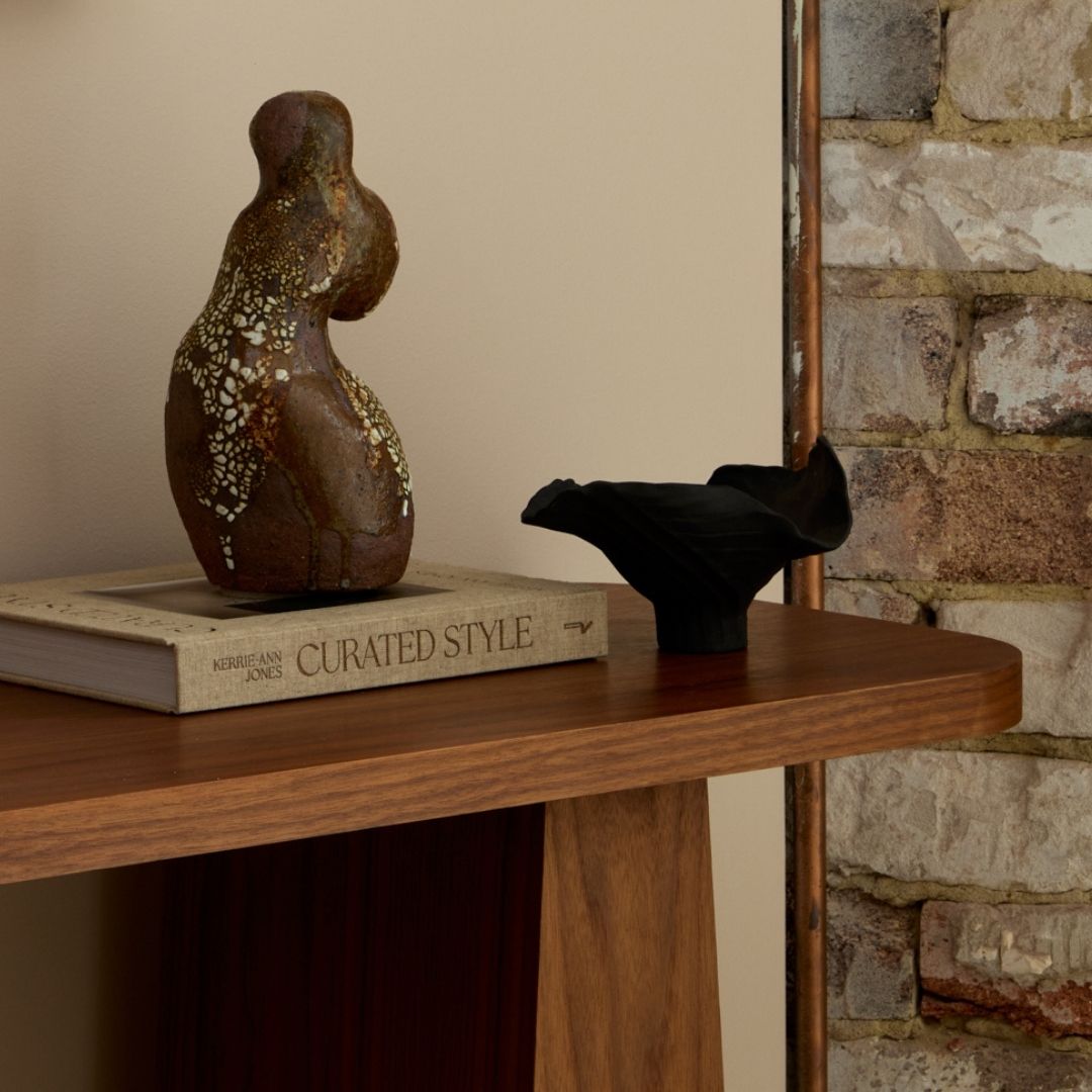 A handcrafted small black ceramic footed bowl by Tee McManus of Australian ceramic studio All Day Clay, finished in a rich, textured glaze and hand-finished with a sanded base. This piece features an organic, hand-formed silhouette, ideal for layering texture and depth into curated spaces.