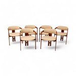 A set of six timber curved-back dining chairs from Denmark in a classic mid-century style.