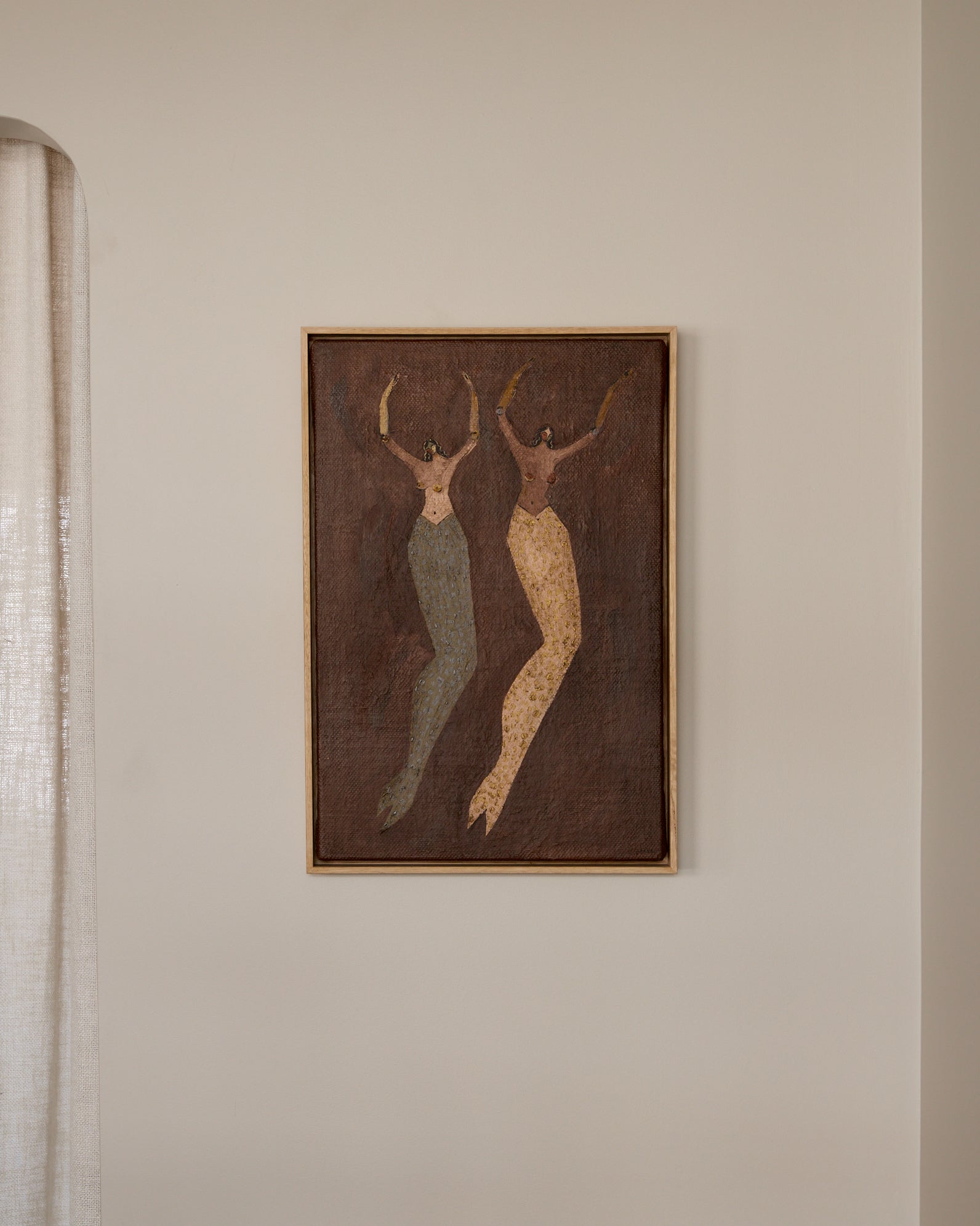 The Lure Of the deep is a compelling work by Australian artist Brittany Ferns, created with oil and oil stick on 450gsm Italian linen wrapped board and framed in Coyote.